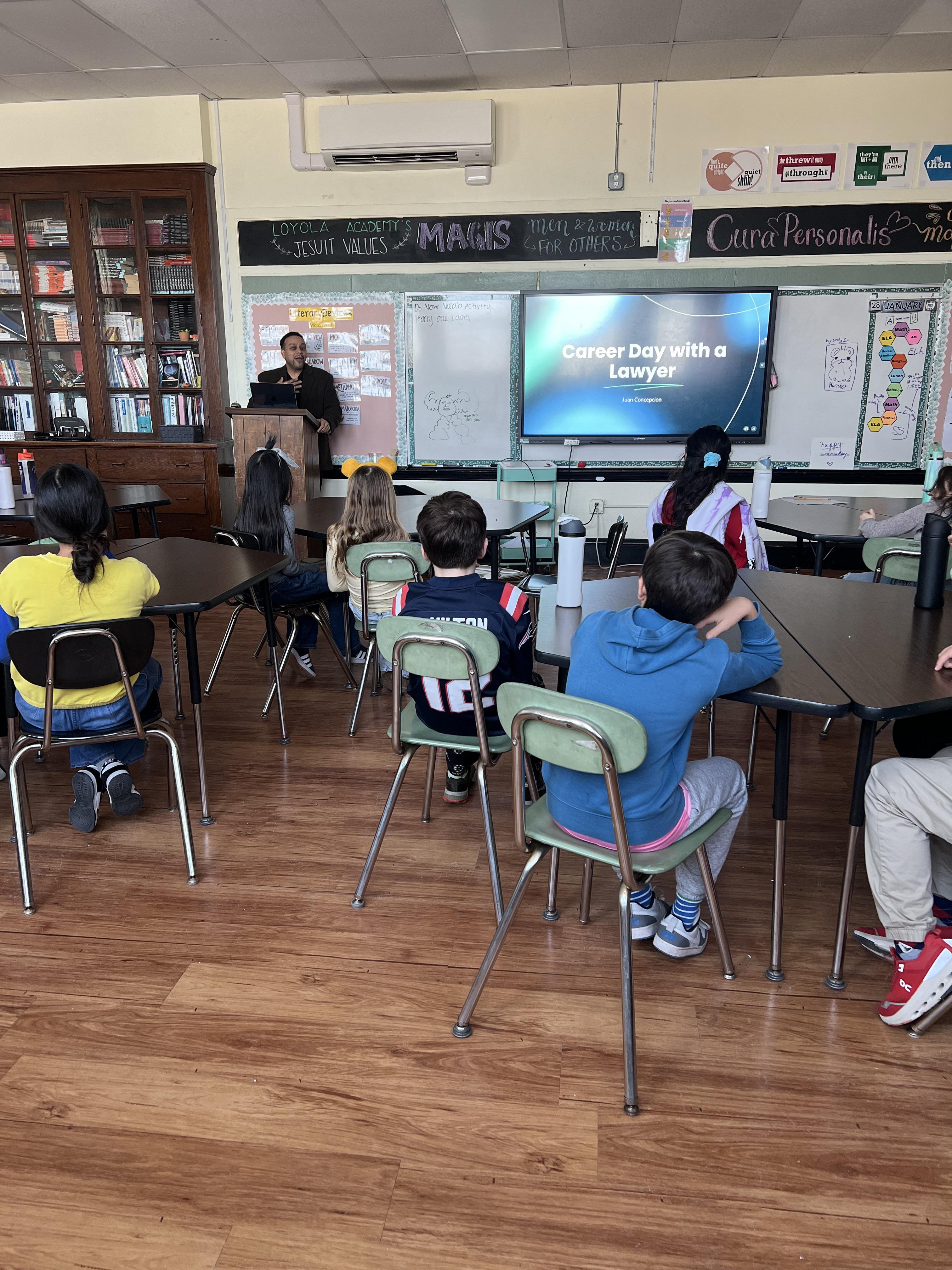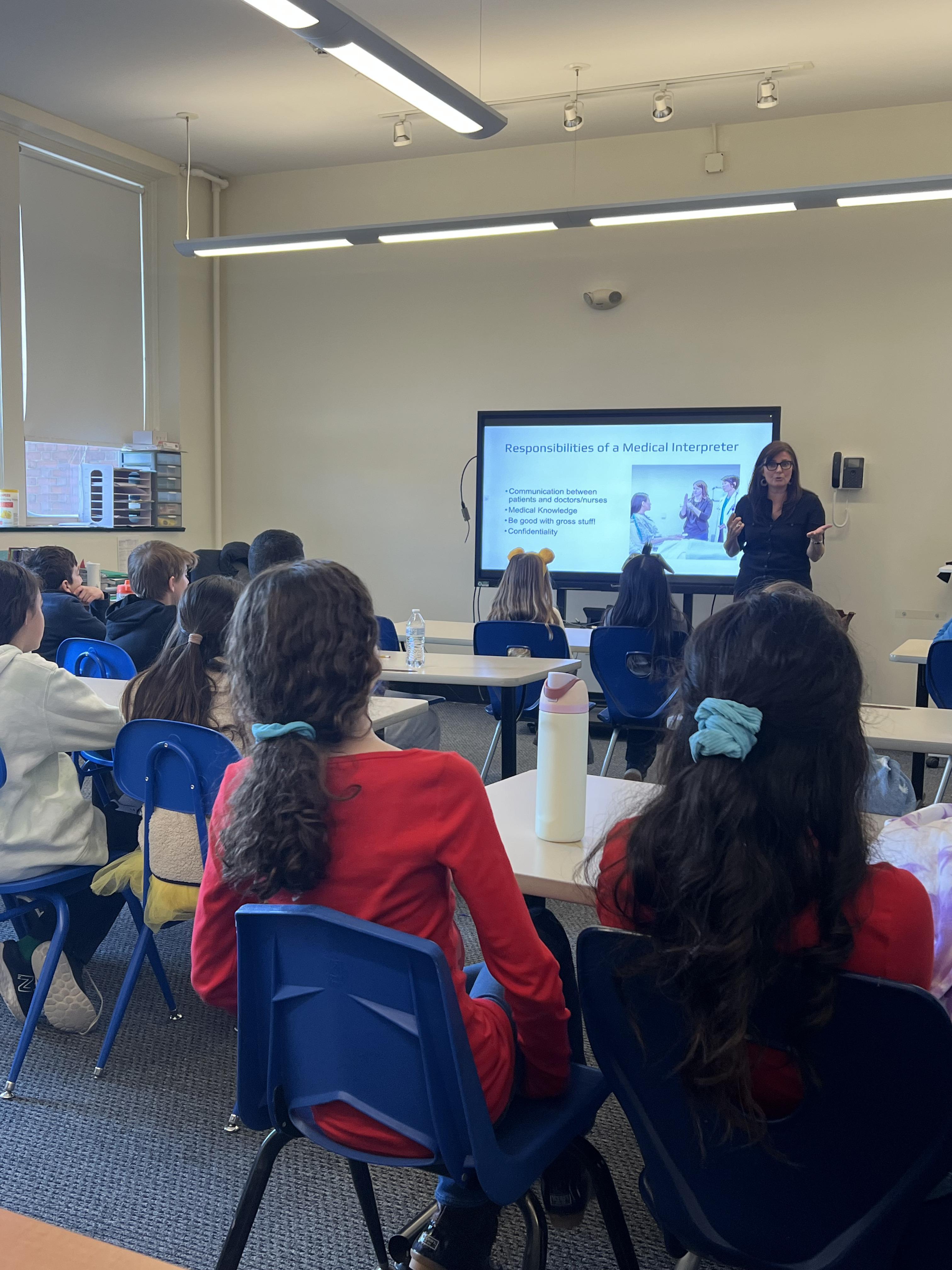 Career Day featured a wide range of presenters representing many professions, including a sign language interpreter, basketball coach, robotics engineer, physician’s assistant, and lawyer. Students learned about each presenter’s career path, what a typical day looks like in their field, and had the opportunity to ask thoughtful questions. Eighth grader Anabella shared, “I’m glad we did Career Day because I am going to high school next year, so it is important for me to think about possible careers, although I don’t need to decide right now. The presentations were inspiring and showed me lots of options for the future.”